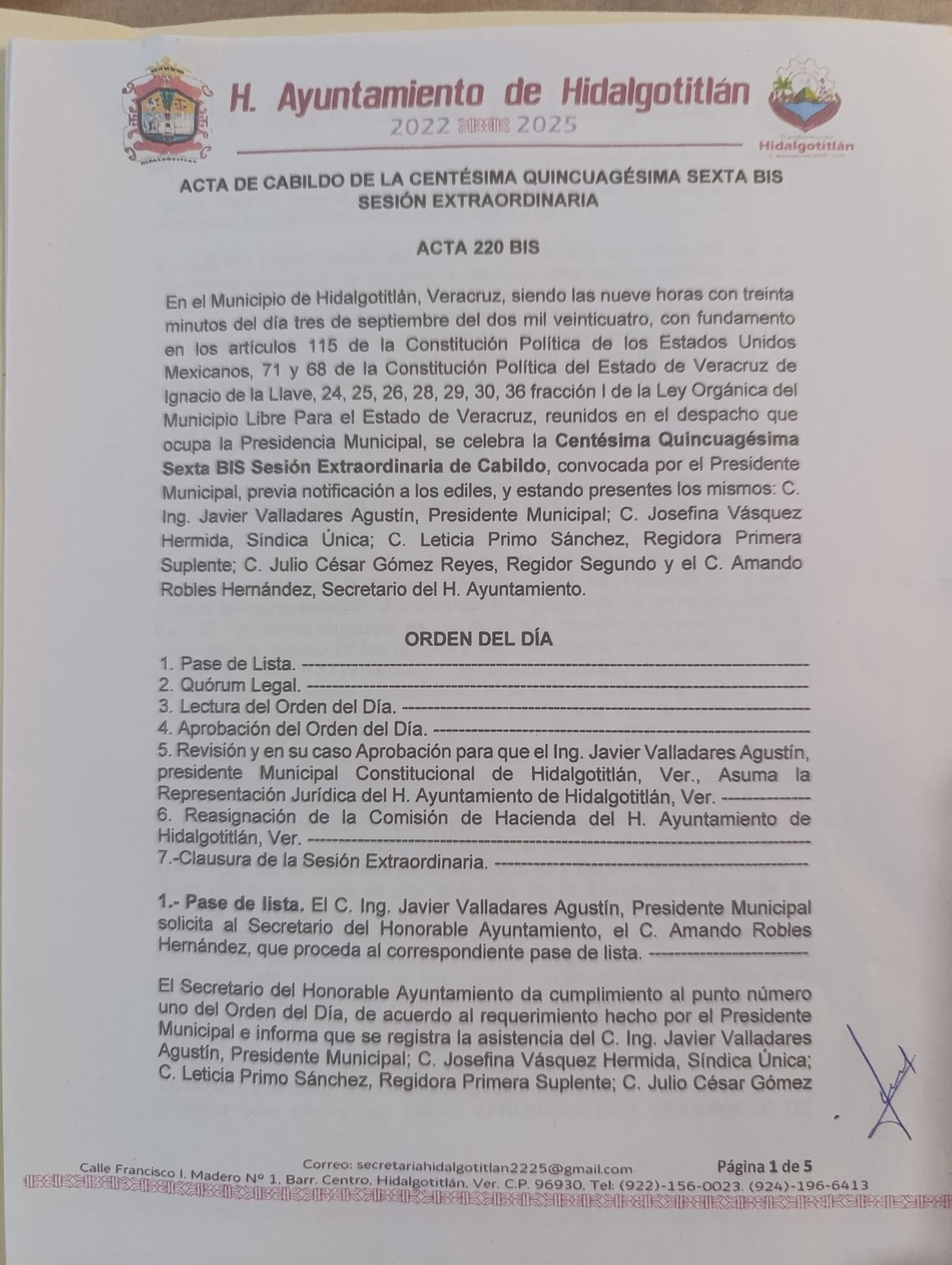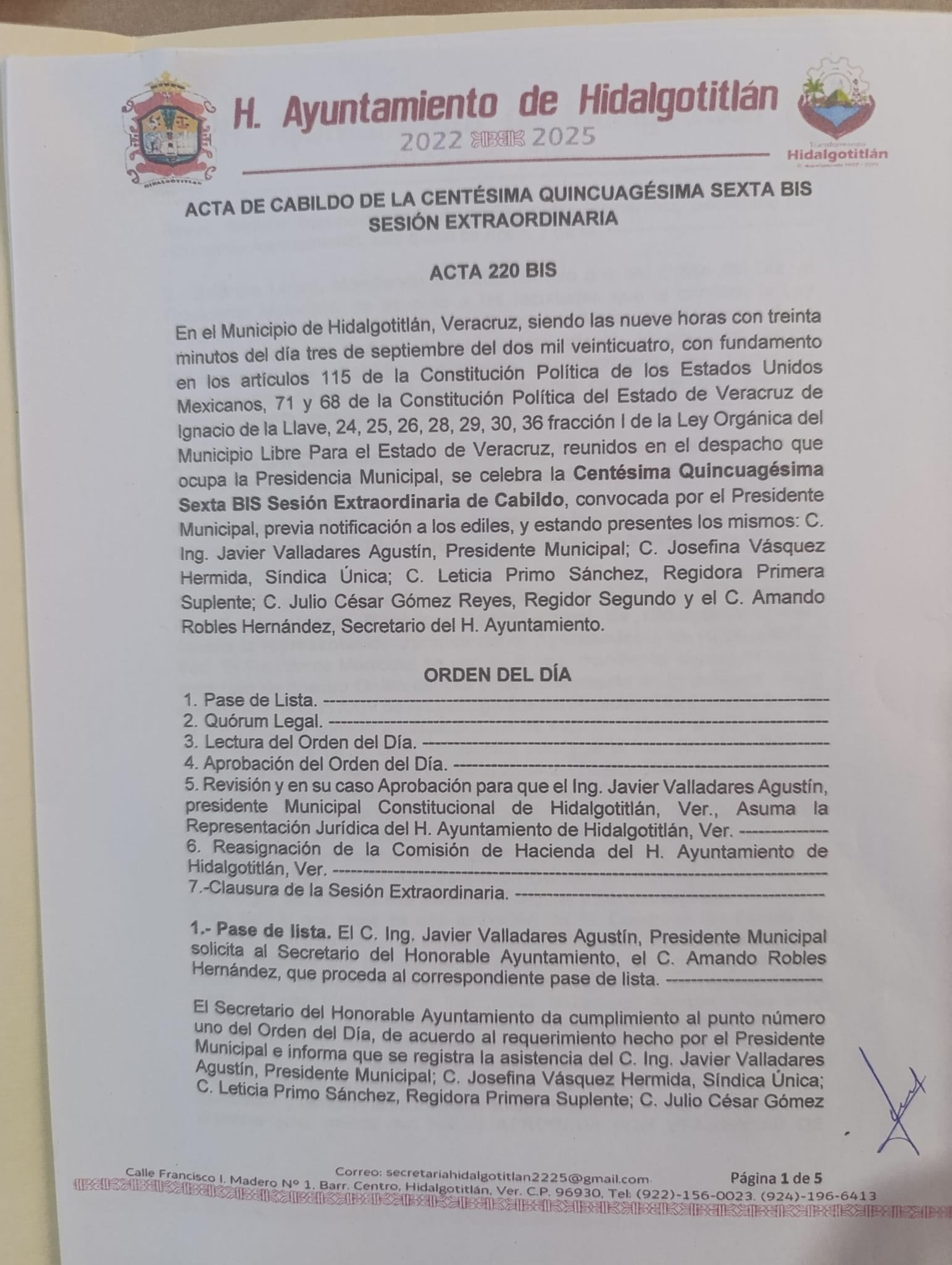 Hidalgotitlán, Ver., a de septiembre del 2024 (Héber Azamar).– En un comunicado difundido a través de la página oficial de la sindicatura, Josefina Vázquez Hermida, síndica única del Ayuntamiento de Hidalgotitlán, ha revelado una situación crítica dentro de la administración municipal, ha denunciado públicamente los abusos de poder por parte del alcalde Javier Valladares.