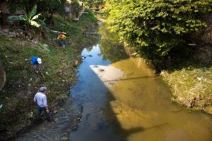 El Gobierno Municipal lleva a cabo la limpieza del canal para eliminar la maleza y vegetación que lo obstruyen, manteniéndolo limpio y despejado. Las labores se realizaron en el puente Constitución, ubicado en la colonia 20 de Noviembre.